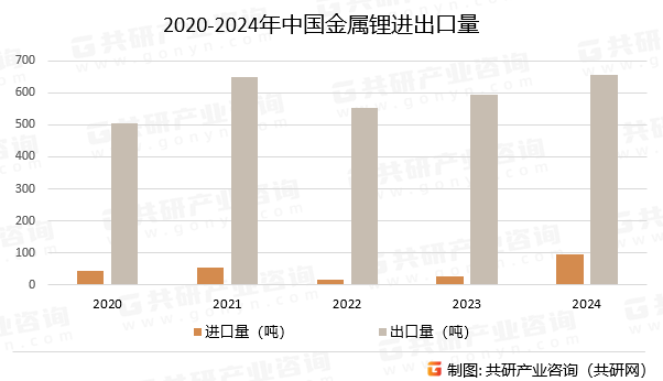 2025年中国金属锂行业进出口规模阐发:出口量为